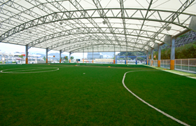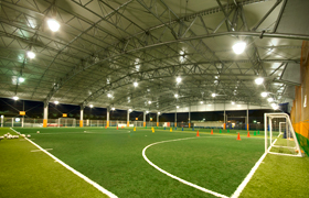 ピヴォックス広島,ドーム型フットサルコート,全面プリズムグローブ形照明