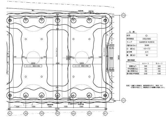 本施設は,天井はあるが壁面の無い半屋外であることから,誘虫性の低いランプが望まれる。また,ユニホームや芝の色彩を自然な色に見せられることや省エネルギー及び保守性の面から効率が良く光束維持率の高いランプが適している。よって本施設のランプには,ランプ効率・光束維持率が高く演色性の優れたセラミック発光管形メタルハライドランプ(M400FCE-W/BUD)を使用した。(図5,図6)