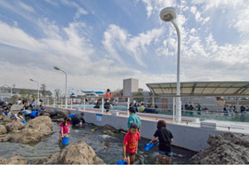 『ふれあいラグーン』は,2007年7月に横浜・八景島シーパラダイス内(神奈川県横浜市金沢区)にオープンした,新しい展示スタイル「Open Aquarium」をコンセプトとし,海の生きものたちとの様々な「ふれあい」を体験できる屋外形の新水族館である。施設は「ホエールオーシャン」,「ヒレアシビーチ」,「サカナリーフ」と3つのゾーンに分かれ,イルカやクジラ,セイウチ,オタリア,ゴマフアザラシ,ペンギンなど海の生きものたちがのびのびと暮らせるよう,生態に配慮するとともに,人と生きものが互いにふれあいながらコミュニケーションを取れるよう,ガラスや柵を可能な限り取り除くなど,開放的なつくりを大きな特長としている。また,海の動物たちの「ふれあいパフォーマンス」や,飼育トレーナーのもとイルカやクジラと触れ合える「ふれあいプログラム」も実施している。(図1)