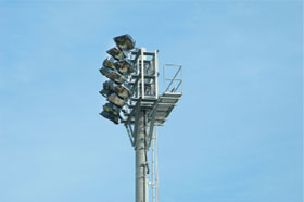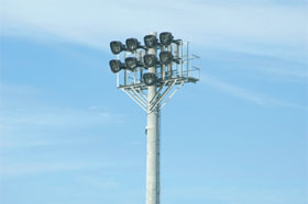 光源の高さについては,JIS Z 9121-1997(屋外陸上競技場,屋外サッカー場及びラグビー場の照明基準)にサイド照明の場合の高さが規定されている。取付高さが低すぎると照明範囲が狭くなったり,グレアの影響が懸念される。また,高すぎると水平面照度に対する鉛直面照度の比率が小さくなり見え方が悪くなる。以上より,本施設では地上高19mのコンクリートポールとし,適正な光源高さとした。