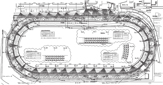 パドック(下見所)は新設スタンドの裏側に場所を移して新設されたが,観客にとってレース前に出走する馬の状態を確認する上で重要な施設であり,走路と同程度の明るさとし,維持平均照度で476ℓxを得ている(図10,図11)。