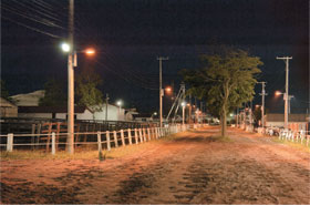 周辺設備の照明は,パドック・駐車場等,広場的な箇所は全般的に照明する必要があるため,投光照明とし,光源は走路照明と同様にメタルハライドランプを採用した。また,馬道・厩舎廻りの通路は,幹線部分を高圧ナトリウムランプの道路灯(KSH-2/H7118+NHT110LS)で照明し,補助通路部分をコンパクト形蛍光ランプの防犯灯(FH7902EH1/2+FHT57EX-N)とした。