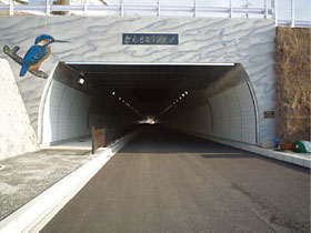 静岡県東部に位置する三島市では,中心市街地に於いて,交通渋滞の緩和及び利便性の向上を目的として,内環状道路の谷田幸原線の建設が進められている。谷田幸原線は総延長3660mの市街地環状道路の一部であり,既に国道1号線から市道祇園原線までの1710mが開通している。その延長工事区間として建設が進められたのが,かわせみトンネルである(2010年4月1日開通)。トンネル名称の“かわせみ”は,平成13年(2001年)に三島市の市制60周年を記念して,市民公募により選ばれた三島市の鳥であり,トンネル坑口部にはかわせみが描かれている。(図1)
