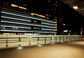 また,側壁に次世代の主照明として注目されるLEDを用いたアプローチライトを100台配置し動線に誘導性を持たせ,夜間も快適な歩行者空間をつくり出すとともに,省エネルギー,省メンテナンスを図っている。(図9,10)