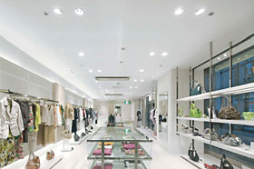 物販店アパレル店舗に関する照度基準は明確なものが無く,各ブランドのイメージ,空間デザイン実務設計者のイメージにおいて光感を共有することが非常に重要である。空間内のベース照度は,程よい明るさ・心地よい光感に設定。