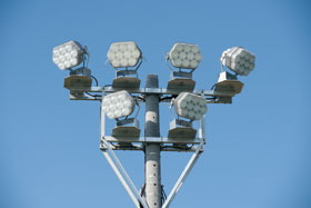 照明設備については,高出力形LED投光器LEDioc FLOOD BLITZ™4灯用4基と6灯用2基により照明している。
