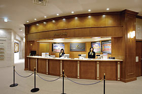 ロビー照明は,間接照明と高い天井の空間演出が重要な位置付けである。フロント周辺は明るく,ロビー待合スペースは落ち着いたくつろげる演出が必要である。