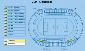 また,客席照明として高効率メタルハライドランプ1000W×16灯,保安照明として,ハロゲンランプ1000W×26灯を設置している。本施設の点灯パターン一覧を表1に示す。