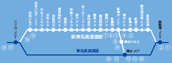| ⑩ | 清水JCT | 16 | W6400×H6000 | 遠方方式 |