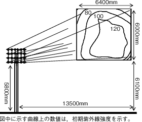 本システムは,視認性向上により走行の安全性と光の周囲環境への悪影響に配慮した標識照明となっている。赤外線や可視光線に比べ紫外線の波長は短く放射量が少ない。すなわち,被照射面の距離にもよるが,届き難く到達する量が少ないため所要の効果を得るには効率が犠牲となる。しかし,本システムは発光フィルムとの相乗効果による所が大きく最小限の設備となっている。