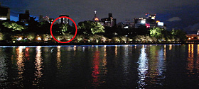 視点場である対岸から照明器具の直接光を隠し,水面のみ光っている景観を創りだした。