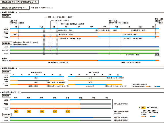 また,通年で週末には全ての照明器具を点灯し,明るい雰囲気を創りだし,特別感を演出している。