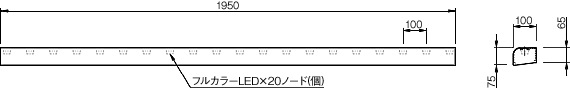 1器具内には,明るさ,ラインとしての見え方を考慮し,1WフルカラーLEDを100mm間隔で配置している。