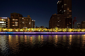 大川 南天満公園護岸,堂島川護岸ライトアップ - 河川を彩る照明演出 -