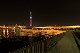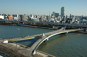 桜橋(さくらばし)は,東京都の隅田川に架かる橋梁である。言問橋よりやや上流に位置するこの橋は,台東区と墨田区の姉妹提携事業として1980年に創架が始まり,1985年に完成した。隅田川唯一の歩行者専用橋で,両岸の隅田公園を結ぶ園路の役割を持つ。形状は平面のX字形の特殊な形状しており,橋長はおよそ170m,中央部の幅員は20m。花見のシーズンには,両岸の桜を楽しむために多くの人がこの橋を渡る。本稿では,同橋梁の照明設備の改修について紹介する(図1,図2)。(2013年3月竣工)