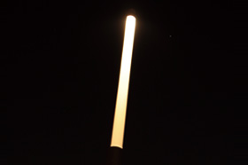 その際,反射笠はそのままに,ポール内上部にLEDioc FLOOD NINO 13Wの電球色(ECF0121LW/07365)を設置し,高欄照明と同じく劣化した前面パネルをポリカーボネート製の乳白パネルに変更することで,スポットライトの照明器具を使用しながら,蛍光灯器具のような淡い面光源の演出を実現させた(図5)。