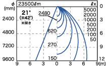 以下に,商品構成(表1)と仕様(表2),2種類の配光特性図(図2),HIDメタルハライドランプ400W高天井器具との比較(表3)を示す。