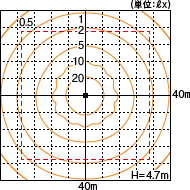 - ※保守率:水銀ランプ400W 0.69/LED 0.63、灯高:4.7m、計算範囲:30m×30m