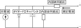 フォトダイオードを電気回路素子と見ると,その内部構造は等価的に図3のようになっていると見なせる。