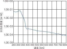 実際に測定したSTOフォトダイオードの分光応答度を図6に示す。光源はメタルハライドランプの光をグレーティングで分光したものを使用し,アパーチャを通してフォトダイオードの受光面内に光線がすべて収まるようにした。また,分光応答度の基準としては値づけされた浜松ホトニクス製フォトダイオードS1337-1010BQを使用した。STOフォトダイオードは波長390nmから320nmの領域で感度が大きく変化し,波長320nm以下の領域では可視光に対する感度のおよそ100倍の感度を有している。予想通り,波長390nm以下の光に対して大きな感度を持ち,STOフォトダイオードが可視光に感度のないフォトダイオードであることが確認された。しかし,STOフォトダイオードにより可視光と紫外光の混合光から紫外光の強度のみを分離して計測する場合は,可視光と紫外光に対する感度の比が100であることと,波長390nmから320nmの領域での感度の変化に注意を要する。