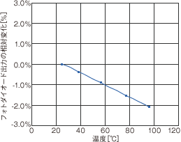 STOフォトダイオードの温度特性を図8に示す。光源には岩崎電気製オゾンレス水銀ランプを使用し,温度調節はオーブンによる周囲雰囲気の過熱により行った。25℃から100℃まで周囲雰囲気を変化させた場合,-0.03%/℃の割合で出力が変化した。STOフォトダイオードを室温付近で使用する場合は,温度係数は十分小さいと考えられる。