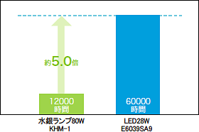 60000時間の長寿命で(光束維持率80%),メンテナンスコストの大幅な削減を行うことができる。