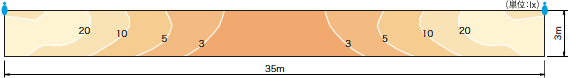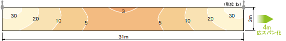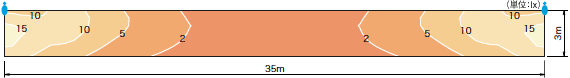 - ※平均水平面照度:12.7ℓx、均斉度(最小/平均):0.21