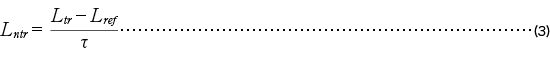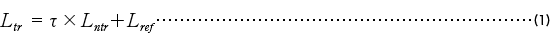 このとき,車内からの測定輝度Ltrと車外からの測定輝度Lntrには以下の関係が成り立つ。