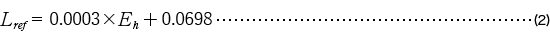 路面輝度測定時に,ダッシュボードの水平面照度を測定し,(2)式を用いることで路面輝度測定時のLrefを予測することが可能となる。今回の実験では,走行中のダッシュボードの平均水平面照度は約21ℓxであった。そこで,(1)式より算出される0.08cd/m²を反射輝度値として用いる。