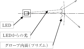 水銀灯同等のむらの無い配光性能を実現するために,グローブ内面にプリズム形状を設け,LEDからの光を水平方向に広がりを持たせている。グローブの効果のイメージを図3に示す。