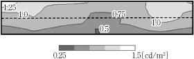 (b) 俯瞰輝度分布