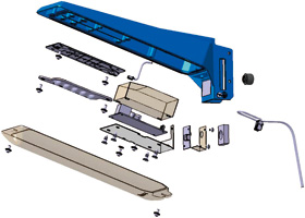 従来品の器具構造図及び主要部品を図2に,新きょう体の器具構造図及び主要部品を図3に,それぞれ示す。