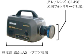 等価光幕輝度は,光源からの直接光による等価光幕輝度(以下,Lvl)と,床や壁などからの反射光による等価光幕輝度(以下,Lve)に分類できる。Lvlは,観測者の視点位置,照明器具の位置と配光データから,各照明器具から視点への直射照度を計算することにより求められる。しかしLveは,間接照度になるため,照度計算からは正確に求めることはできない。また,等価光幕輝度の測定には,グレアレンズといわれる特殊なレンズを輝度計に装着した等価光幕輝度計を用いる必要がある(図2参照)が,グレアレンズは現在製造されておらず入手することが困難である。そのため実測によるTI値の評価は行われていないのが現状である。そこで我々は,市販のデジタルカメラを用いた写真測光により,簡単で高速にかつ正確に等価光幕輝度を測定し,TI値の評価ができるソフトを開発した。既往研究6)では,写真測光によるLveの測定精度の検証が行われており,その妥当性が確認されている。しかしながら,グレア源となる光源からの直接光による等価光幕輝度(Lvl)の測定精度の検証は行われておらず,写真測光のみではグレア評価を行うことができなかった。はじめに我々は,実験室で写真測光によるLvlの測定精度の検証を行い,その妥当性の確認を行った。また開発したソフトを用いて,実環境にてTI値の評価を行ったのでその結果について報告する。