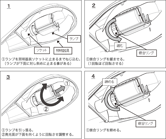 ランプをソケットに取り付けた時に発光面が下面に向くように,ランプネック部に設けられた角度可変機構にて調整することができる(図3)。