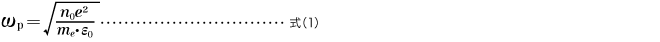 一般に,電子密度n₀のプラズマにおいてプラズマ周波数ωpは次式で表され,電子密度の平方根に比例する3)。ここで,meは電子の質量,eは素電荷,ε₀は真空中の誘電率である。