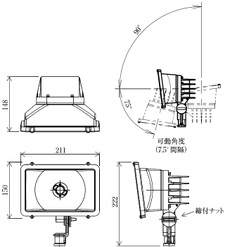 また,器具の取付角度は締付ナットで調整でき,7.5°間隔で165°の可動範囲を設けている(図2)。