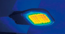 従来形の歩道灯では,LEDの固有エネルギー消費効率が66.0ℓm/W程度であったが,本商品では約2倍の129.4ℓm/Wを実現した。