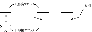 (3)左右の上溶接ブロックを降下させ,母材を把持する。