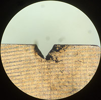 表3に上下の電極の使用前である初期状態の写真と,下電極が摩耗した状態の写真を示す。摩耗した下電極は,初期状態と比べてV字溝が削れていることが分かる。