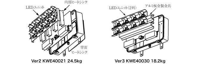 なお,放熱構造の見直しでは放熱用の部品を削減しており,Ver.2の一部の機種で採用していた背面ヒートシンクも不要となるなど,材料費削減,組立の簡易化とともに軽量化も可能となった(図4)。