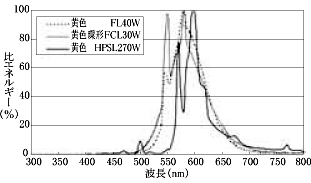図14 各種黄色ランプの分光エネルギー分布