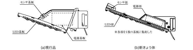 現行品と新きょう体の基板の配置図を図3に示す。