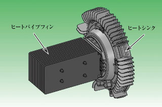 図3にヒートシンク部の構成概略を示す。なお,ヒートシンクとヒートパイプフィンは,ヒートパイプによって接続されている。