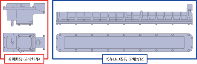 また,常用灯部に使用している既存製品のコンセプトであるコンパクト化,軽量化について,非常灯部に今までにない構造を用いることで商品として満足した。さらに,器具の幅,ねじの取付ピッチを既存製品に合わせ,デザインでも統一性のある商品をラインアップすることができた。