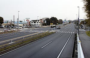 改修後の,坂下町4丁目交差点(多治見側より観測)の昼間時の現況を図8に,松原2丁目交差点(名古屋城側より観測)の昼間時の現況を図9に示す。遠方の運転者は,昼間時,コーナー配置された照明設備の配置などから,その箇所が交差点であることが認識できやすくなった。