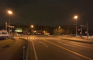 松原2丁目交差点は,クロス・パズー™照明を増灯することにより,横断歩道の中央部の暗がりを解消し,横断歩道の始点終点及び範囲や,横断歩道中央部の歩行者の存在も良く視認できる安全性を高めた交差点視環境に改善された。