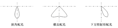 同じ形状で狭角配光,横長配光,下方照射形配光の3種類の配光パターン(図8)を持つユニットが用意されており,用途に応じて使い分けが可能である。