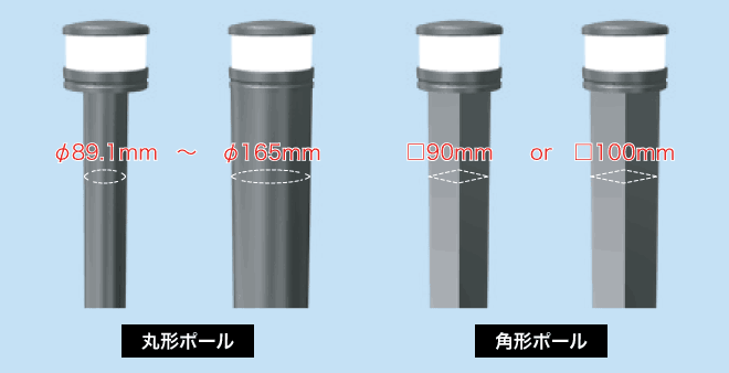 | 適合ポール | ø89.1mm~ø165mm,□90mm,□100mm | ø100mm(専用ポール:PGL37) | ||