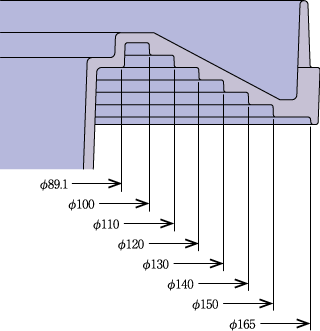 既設用タイプの器具には,岩崎電気独自のマルチアダプタ構造を搭載することにより,管径ø89.1mm~ø165mmまでの丸形ポールだけではなく,□90mmや□100mmの角形ポールまで幅広く対応する(図3,図4)。