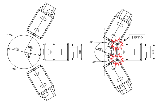 図3のOn Roll方式のようにローラー部に照射器を設置する場合,設置向きは多方向にならざるを得ないが,生産ラインによって異なる角度に合わせて都度照射器を用意するのでは扱いにくい。そのため同じ照射器を上,下,横,斜めなど,どの方向でも取付けられるか検討を行った。この場合に発生する問題として,主に以下の2つが挙げられる。